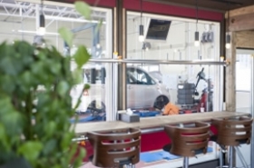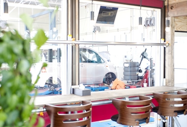 私達の車検工場は、カーディーラーと変わらない設備を持っている工場です。 安心の整備保証付き!